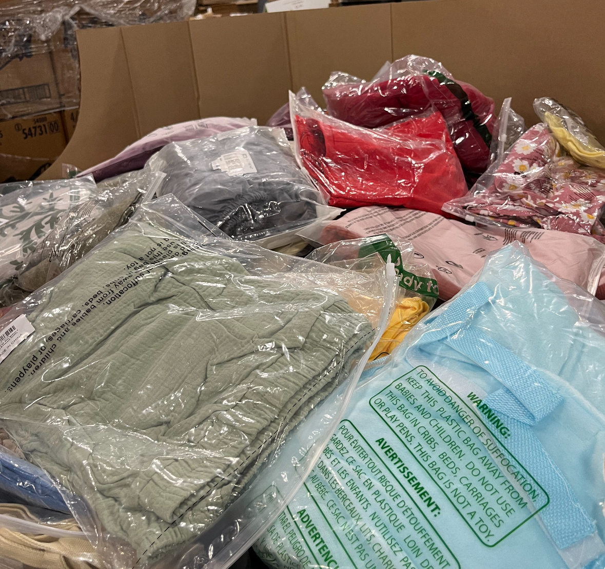 All clothing in these loads are in poly bags (green stripe). Great for resellers, discount stores and pallet sales.