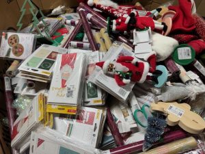 24 pallets of assorted Christmas merchandise from T@rget stores. Over 80-90 percent of the merchandise is new. Every load will be a massive assortment of tens of thousands of small to medium size items including decorations, ornaments, toys, wrapping paper, stockings and more!