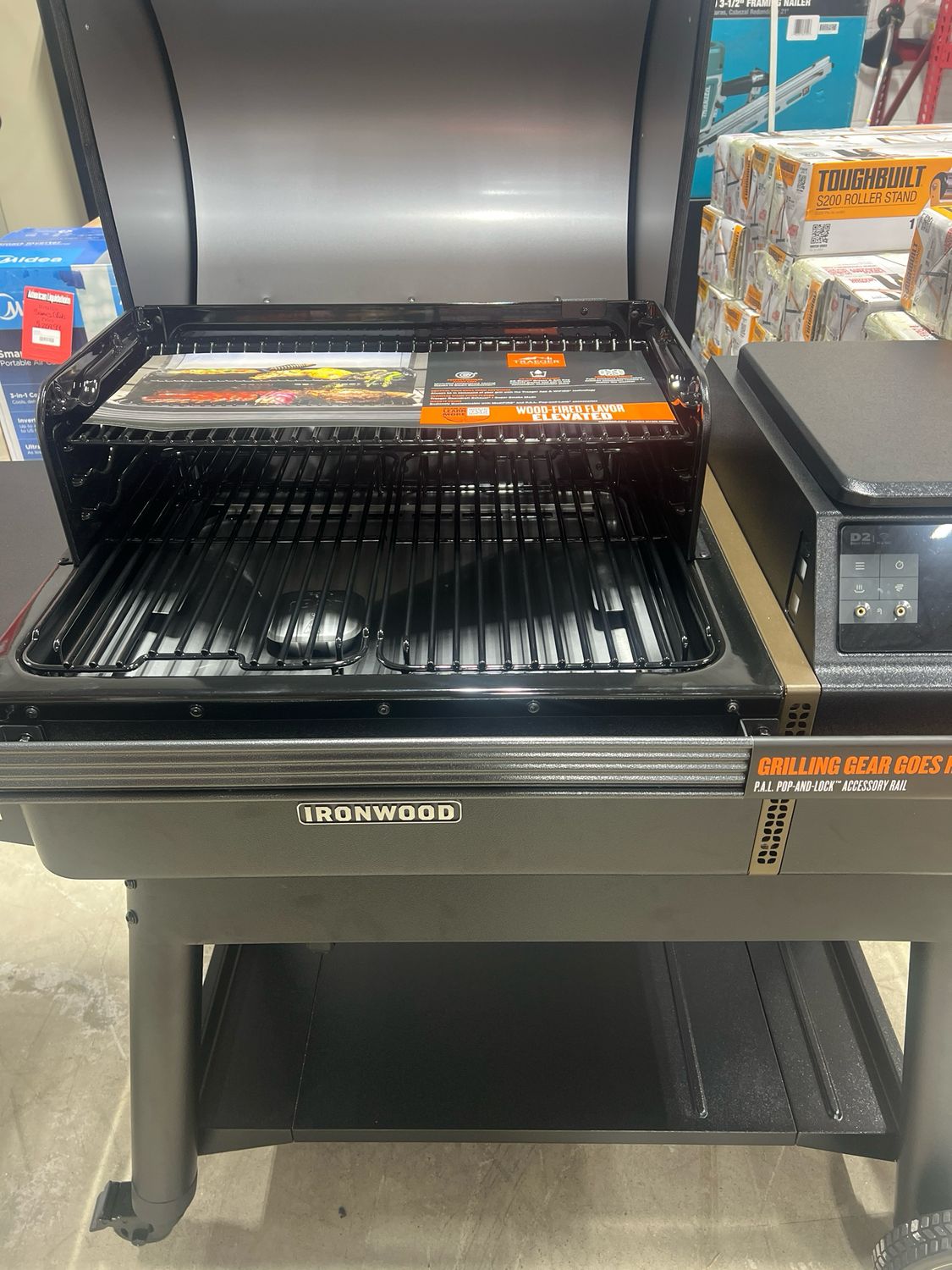 Traeger Ironwood smoker. Wood fired flavor. Perfect for that grill lover in your family. This grill comes with WiFIRE technology. Brand new. EZ Clean. Traeger downdraft exhaust. Grilling area 616 sq inches. Hopper capacity 22lbs
